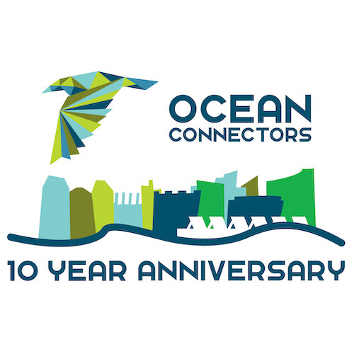 Logo for the 10 year anniversary celebration event for the non-profit Ocean Connectors